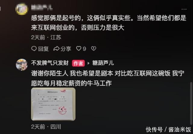 不过,也有网友怀疑两人是为了起号,才拍视频的,但很快,小蔡贴出了小齐的《解除劳动合同证明书》,称这一切都是真的,并不是剧本,比起吃互联网这碗饭,她宁愿自己是个打工牛马。