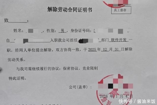 本来小齐以为不会那么快,哪成想,公司领导在2025年12月31号就找他谈了话,让小齐当天就完成工作交接,并在2026年1月4号回公司办理离职手续。