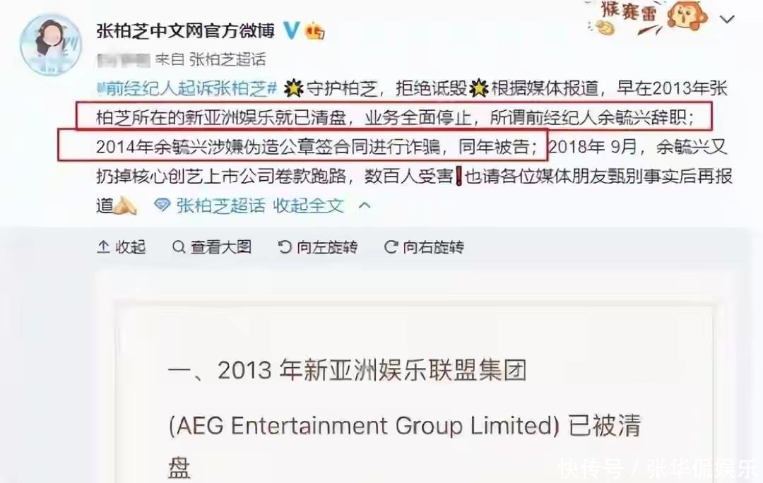 但张柏芝方反驳称,双方合作早在2013年就已终止:当年张柏芝所属的新亚洲娱乐联盟集团因未履行赔偿裁决,被香港高等法院勒令清盘,余毓兴也于同期辞去该公司董事总经理一职,不再担任张柏芝的经纪人,实际合作仅持续一年左右,后续续约合约并非基于有效合作关系签订,因此不具备履行义务。此外,张柏芝方还提及,余毓兴在2014年曾被指涉嫌伪造公章,以张柏芝经纪人名义擅自对外签约,相关事件已引发另一起法律纠纷,但这一说法未得到余毓兴方的认可。